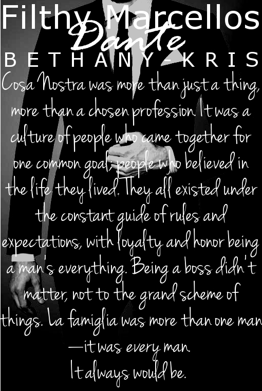 The rules for their arrangement are simple: no intimacy, no emotions. Dante isn’t looking for love and Catrina doesn’t need attachments. In the end, life has a way of breaking down walls when you least expect it to, and once love gets in, there’s no bleeding it out. Together, they make a formidable team the Commission won’t be able to ignore. Catrina’s secret of what she’s kept safe will put the entire Marcello family in danger when it finally catches up with her. The Marcellos have yet to be beaten, and they’re not about to start bowing down now.