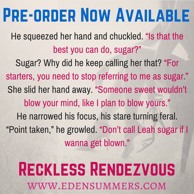 In late 2010, Eden’s romance obsession could no longer be sated by reading alone, so she decided to give voice to the sexy men and sassy women in her mind.