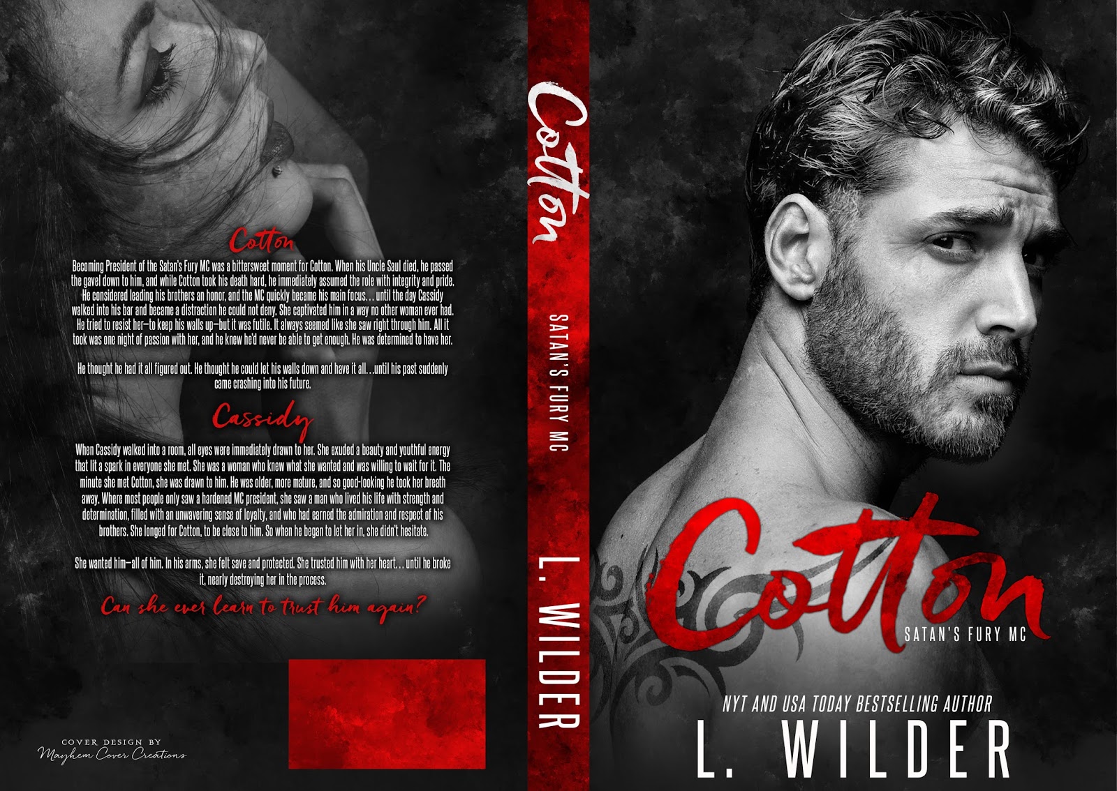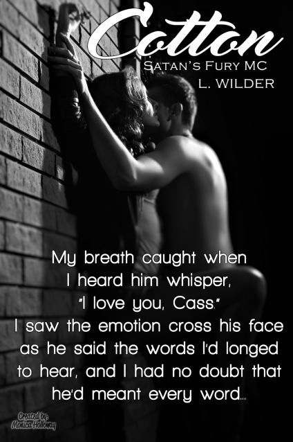 Becoming President of the Satan’s Fury MC was a bittersweet moment for Cotton. When his Uncle Saul died, he passed the gavel down to him, and while Cotton took his death hard, he immediately assumed the role with integrity and pride. He considered leading his brothers an honor, and the MC quickly became his main focus… until the day Cassidy walked into his bar and became a distraction he could not deny. She captivated him in a way no other woman ever had. He tried to resist her—to keep his walls up—but it was futile. It always seemed like she saw right through him. All it took was one night of passion with her, and he knew he’d never be able to get enough. He was determined to have her.