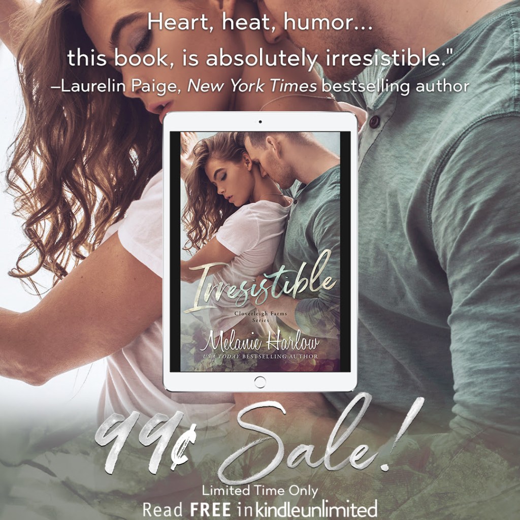 Irresistible, a swoon-worthy single dad, small-town romance guaranteed to sweep you off your feet by USA Today bestselling author Melanie Harlow, is ON SALE for 99¢ for a limited time only!